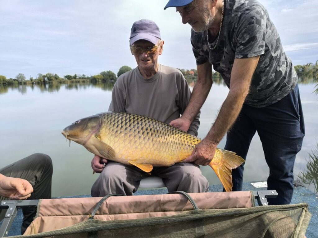 A gyönyörű ponty halibut pellettel csalizott fenekező készséget vett fel kukoricás etetésen. A mintegy 15 perces fárasztás során a hal a másik bedobott készséget is összeszedte, e nehéz helyzet megoldásában a bácsi 86 éves felesége segédkezett.