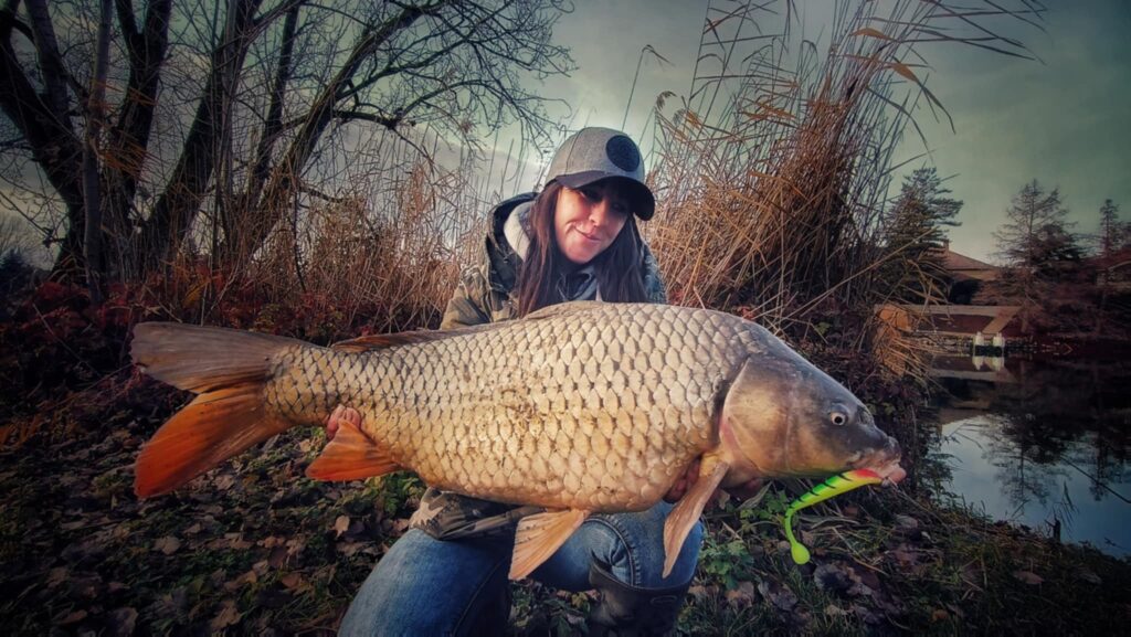 Gumihallal fogott, 8 kiló feletti ponty lepte meg Krisztát csukapergetés közben!! A szerencsés hölgy horgász habár a körösi krokikat célozta, egy jókora, 8+os pikkelyes csapott le a gondosan vezetett műcsalijára!